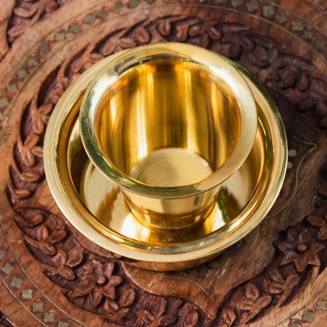 南インドのコーヒーカップとソーサーセット ブラス製 / カップ、コーヒー カップ、コップ、コーヒー、ステンレス 食器、コーヒー インド アジアの食材 【インドとアジアン食品・食材