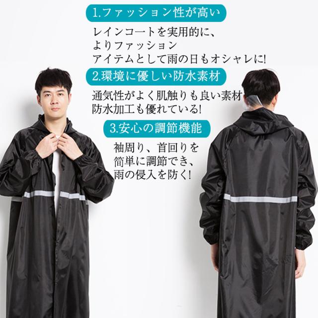 レインコート ロング メンズ レディース 男女兼用 反射テープ 自転車 レインポンチョ カッパ レインウェア レインスーツ 梅雨