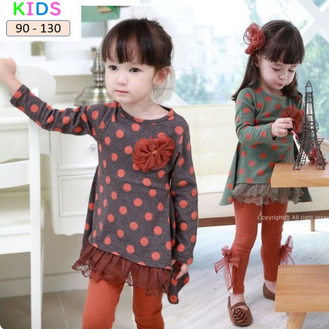 子供服 トップス 女の子 長袖 チュニック 子供服 ドット柄 可愛い