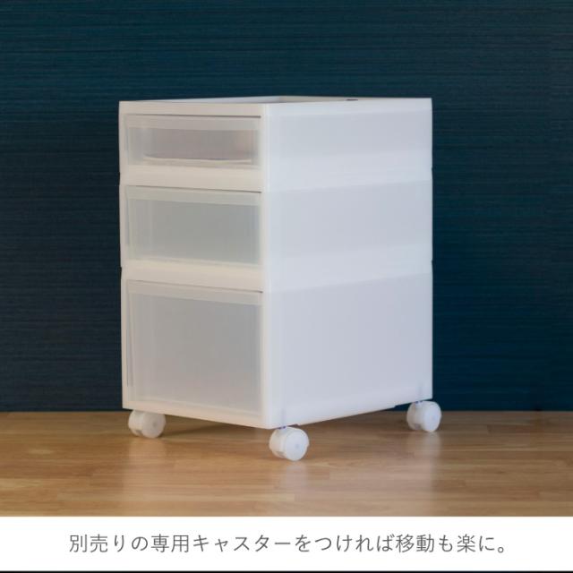 差し込むだけで使える別売のキャスターを付ければ可動式のチェストにできて、お掃除も簡単にできます。