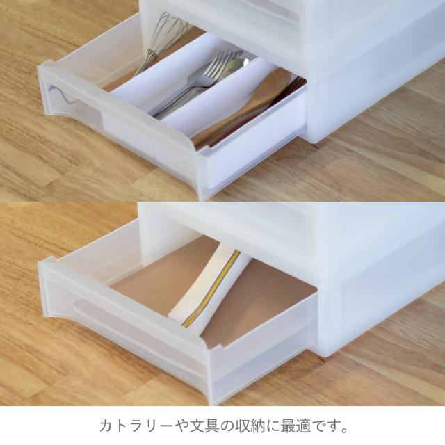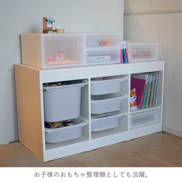 引き出しには、抜け落ち防止ストッパーが付きでお子様の衣類収納や、おもちゃ箱にもオススメです。