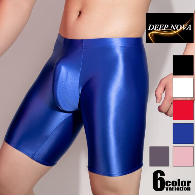 メンズボクサー DEEP NOVA/ディープノバ サテン調光沢 透け感 ロングボクサー ボクサーパンツ 男性下着 メンズ