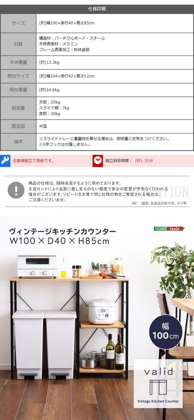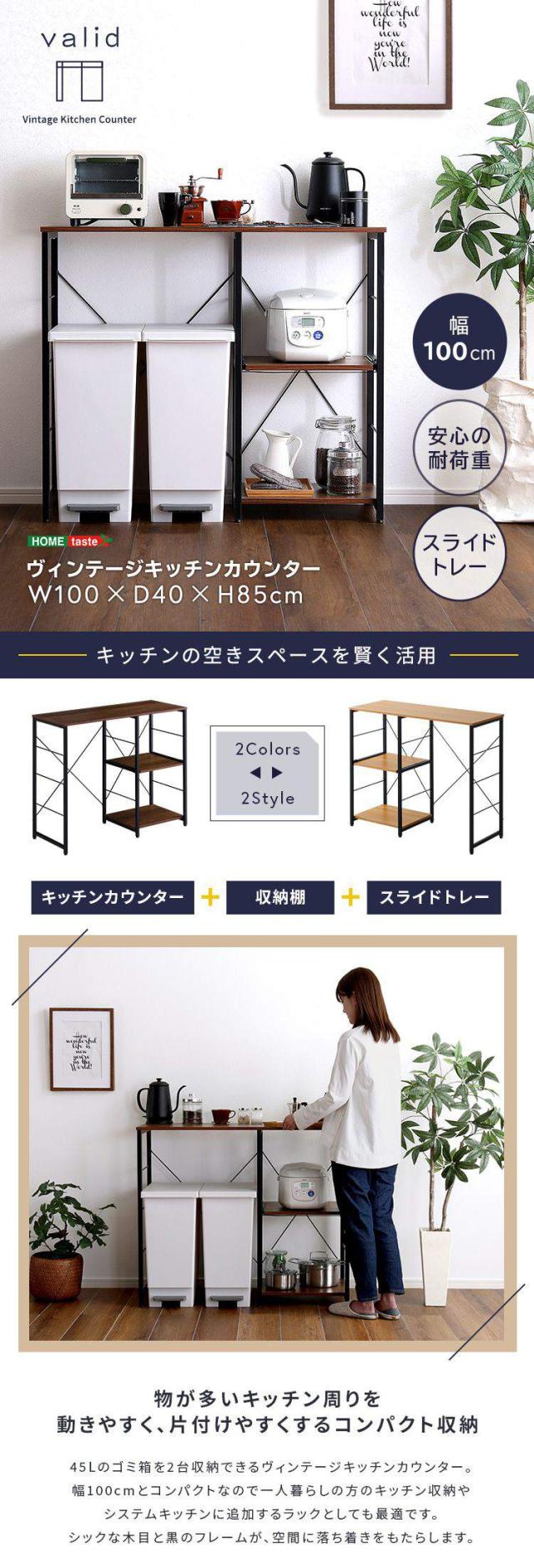 ヴィンテージキッチンカウンター varid ヴァリド 幅100cm キッチンカウンター キッチン収納 ゴミ箱上ラック ゴミ箱上収納 45L キッチン コンパクト収納 カウンター トースター レンジ 炊飯器(代引不可)【送料無料】