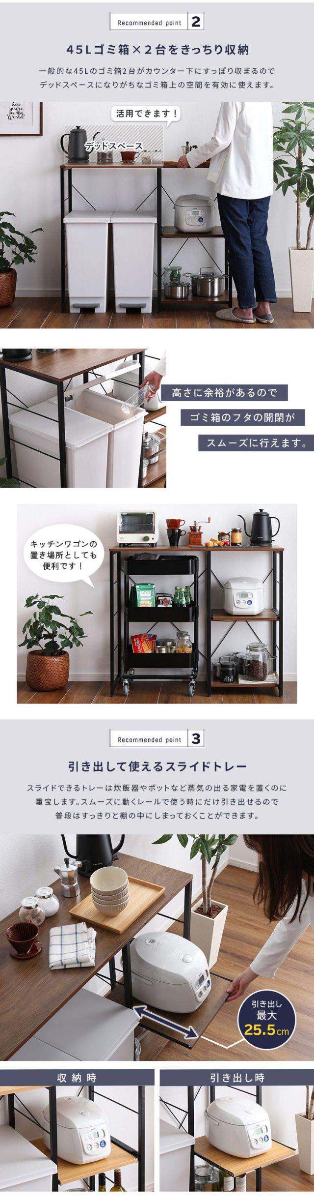 幅100cmとコンパクトながら45リットルのゴミ箱を2台収納できるので、一人暮らしの方や追加のラックとしても最適です。