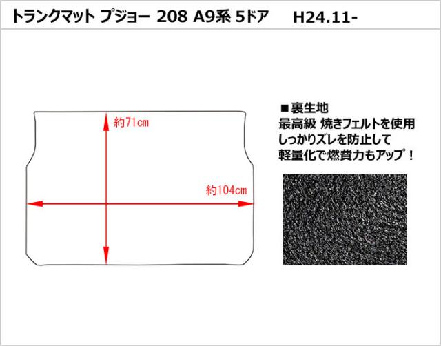 [厚さ20mm最高級マット]プジョー 208 A9系 5ドア ラゲッジマット フロアマット トランクマット「最高級フロアマット」