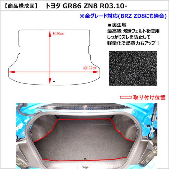[厚さ20mm最高級マット]トヨタ 新型 GR86 ZN8 ラゲッジマット フロアマット トランクマット「最高級フロアマット」