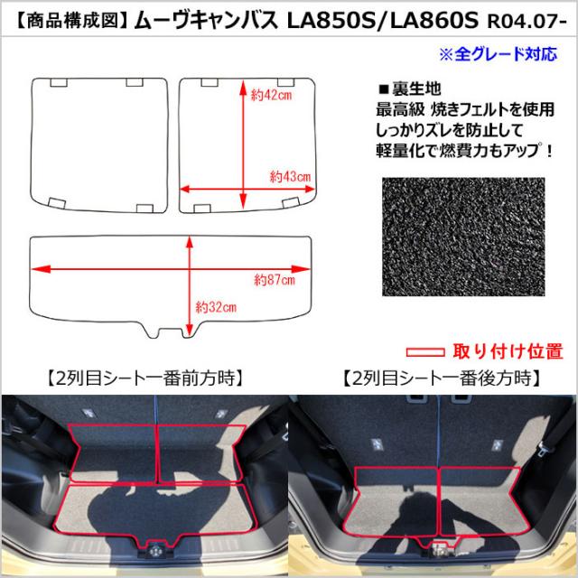 [厚さ20mm最高級マット]ダイハツ 新型 ムーヴキャンバス LA850S LA860S ラゲッジマット フロアマット トランクマット「最高級フロアマット」