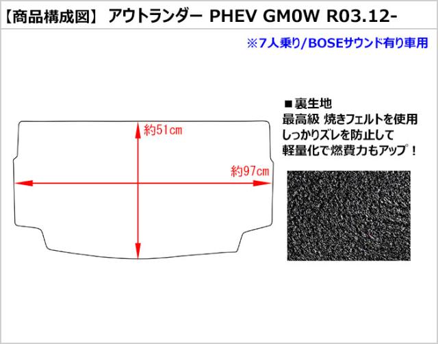 [厚さ20mm最高級マット]三菱 新型 アウトランダーPHEV GN0W 7人乗り ラゲッジマット フロアマット トランクマット「最高級フロアマット」