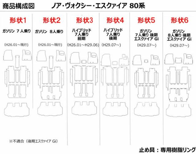 ガソリン 7人 :M-1319 ガソリン 8人 :M-1320 ハイブリッド 7人 前期:M-1322 ハイブリッド 7人 後期:M-1321 エスクァイアGi 7人 :M-1324 エスクァイアGi 8人:M-1323