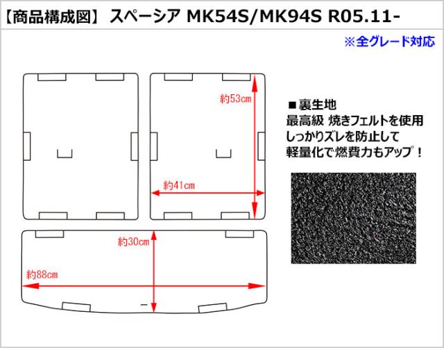 [厚さ20mm最高級マット]スズキ 新型 スペーシア スペーシアカスタム MK54S MK94S ラゲッジマット フロアマット トランクマット「最高級フロアマット」