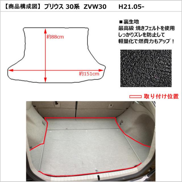 [厚さ20mm最高級マット]トヨタ プリウス 30系 ラゲッジマット フロアマット トランクマット「最高級フロアマット」