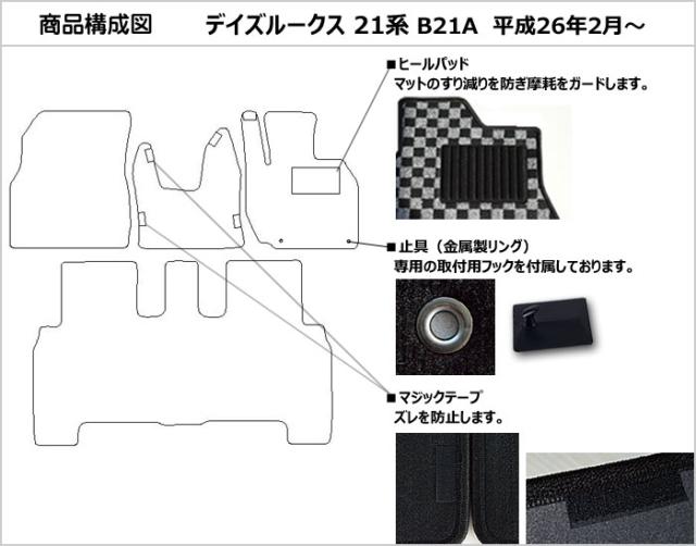 [厚さ20mm最高級マット]日産 デイズ ルークス B21A フロアマット「最高級フロアマット」