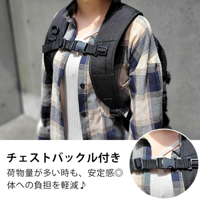 背負い面がメッシュ+スポンジ仕様で体への負担を軽減♪
