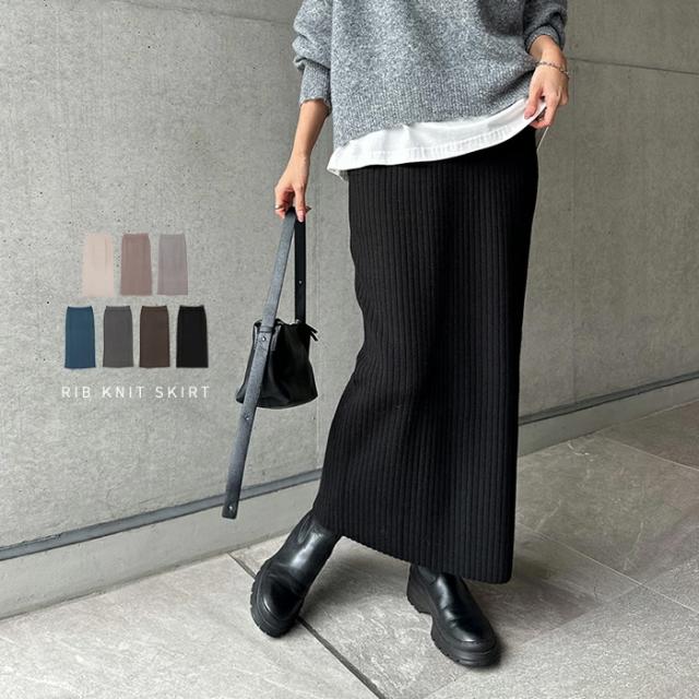 ロングスカート ニットスカート スカート ロング レディース リブ ニット カジュアル ストレッチ タイトシルエット スタイルアップ ウエストゴム リブニット ボトムス マキシ丈 M/Lサイズ 春 秋 冬 秋冬 おしゃれ きれいめ オフィス カジュアル 通勤 通学 デート t02