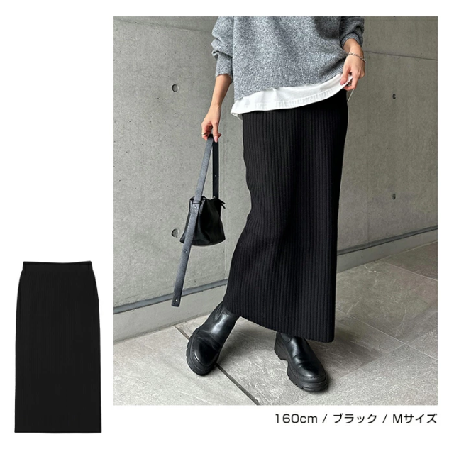 t04 ロングスカート ニットスカート スカート ロング レディース リブ ニット カジュアル ストレッチ タイトシルエット スタイルアップ ウエストゴム リブニット ボトムス マキシ丈 M/Lサイズ 春 秋 冬 秋冬 おしゃれ きれいめ オフィス カジュアル 通勤 通学 デート