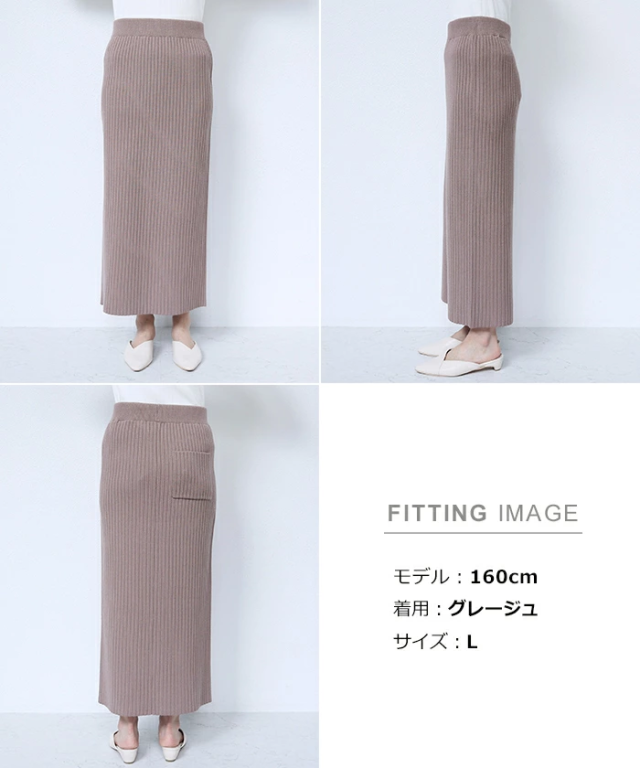 程よい厚みと温かさのあるリブが心地よく、 もっちり質感とシルエットが美しい、 Iラインのニットスカートが新登場! 着心地の良いリブ素材はストレッチ性があり、 動きやすく足さばきも◎ 縦ラインを強調するリブ編みで スタイルアップを叶えてくれる美ラインボトム! ニットスカートならではのリラックスムードを残しながら、 きちんと感も出るような大人なニットスカートに仕上げています 。 インナーショーツ等のあたりが目立たないよう、 後ろにアウトポケットをつけた工夫も注目ポイント! トップスを選ばずコーデが楽しめる、 大人のこなれカジュアルアイテムです♪ ※裏地なし 《お取り扱い上のご注意(ピリング)》 素材の特性上、長時間の摩擦や揉み作用で 毛玉ができやすいため、ご注意ください。 毛玉が目立った場合は無理に引っ張らず、 ハサミや毛玉取り器で取り除いてください。 ※発送上の状態によって商品がシワになる場合がございます。予めご了承くださいませ。 |