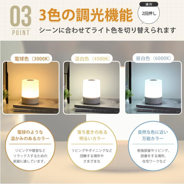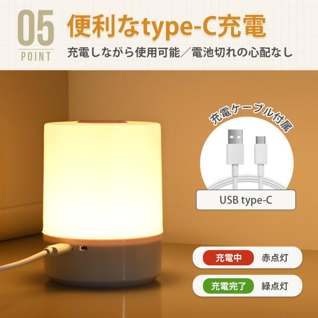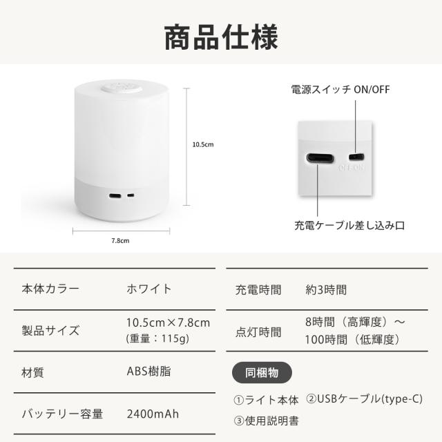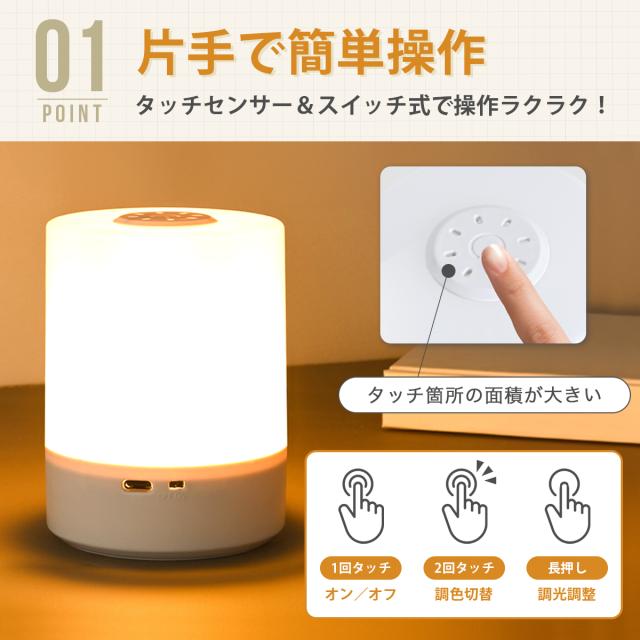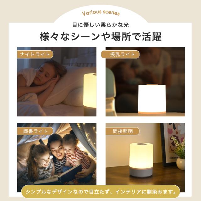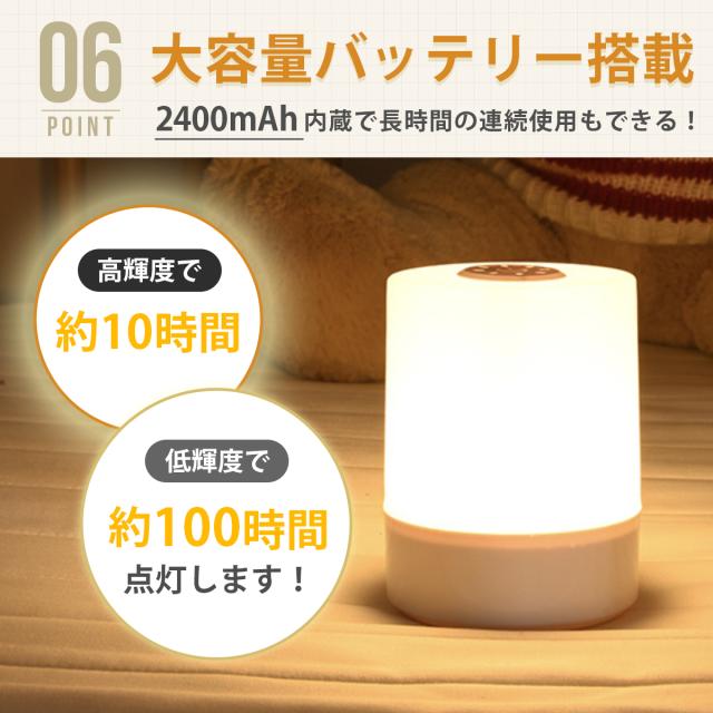 ナイトライト 授乳ライト 大容量2400mAh ベッドサイドライト コードレス タッチセンサー メモリー機能 テーブルランプ 明るさ調整 usb充電 間接照明 常夜灯