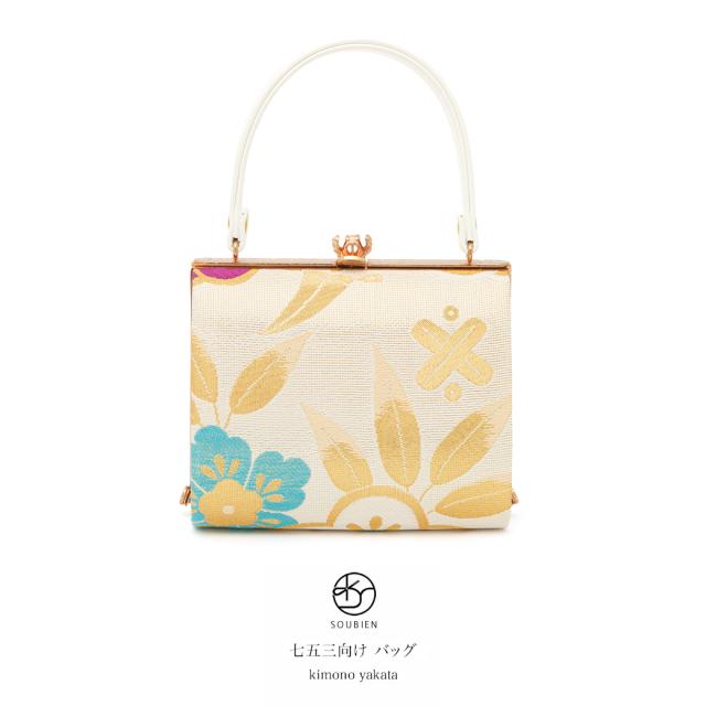 バッグ 七五三 七歳 袴 卒業式用 販売 女の子 帯生地 刺繍 女児 子供 キッズ 小さい 小ぶり モダン 白 黄色 手毬 かばん 鞄 バック 手提げバッグ 送料無料