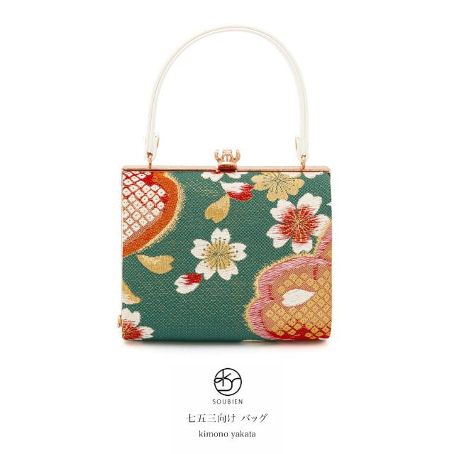バッグ 七五三 七歳 袴 卒業式用 販売 女の子 帯生地 刺繍 女児 子供 キッズ 小さい 小ぶり モダン 緑 赤 白 桜 かばん 鞄 バック 手提げバッグ 送料無料