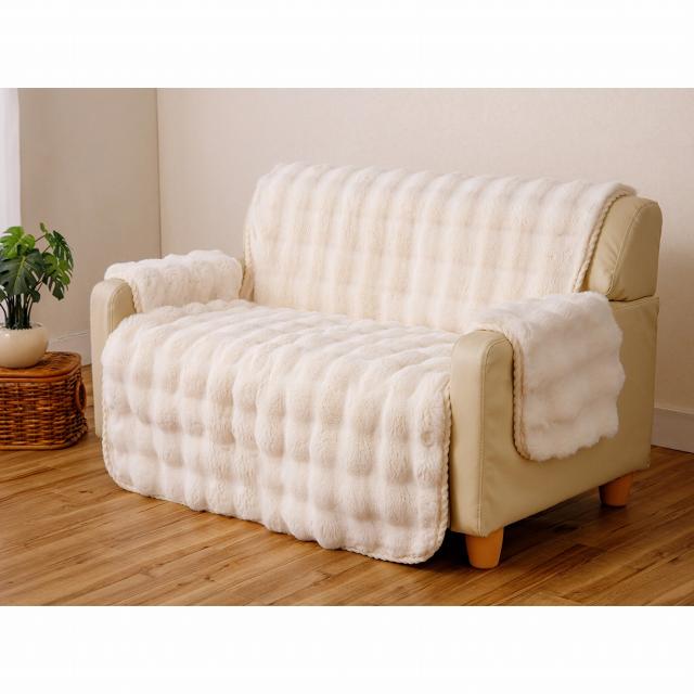 ラビットファー風 ソファカバー もこもこ 韓国テイスト 秋冬 あったか シンプル アームカバー付きも可能 2人掛け 100×160