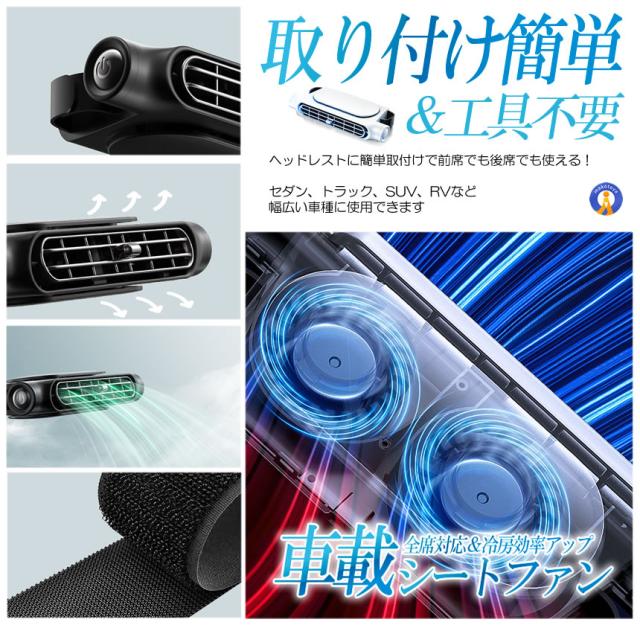 車 扇風機 シート ファン 車載扇風機 車用扇風機 サーキュレーター 車内扇風機 車用シートファン 扇風機後部 座席 運転席 USB ヘッドレスト シートクーラー 背中 首もと 涼しい 空調 暑さ対策 KURUMASEN