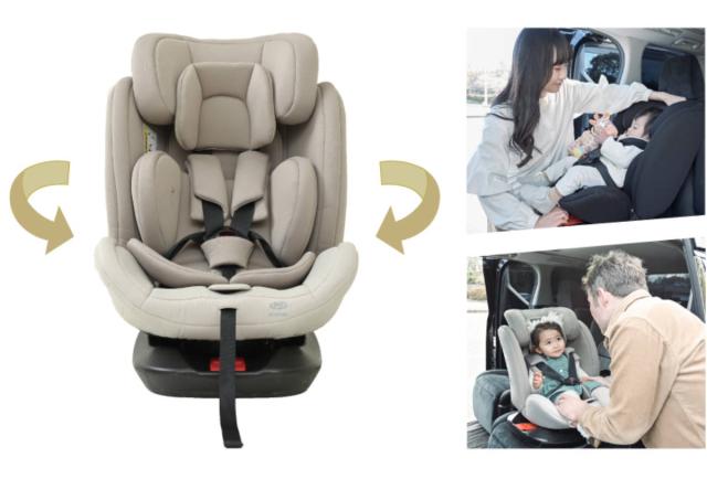 360度座席を回転させられるので、赤ちゃんの乗せ降ろしが簡単にできます。スムーズで静かな回転なので、寝ている赤ちゃんも起こさず、ママもパパもうれしい設計です。