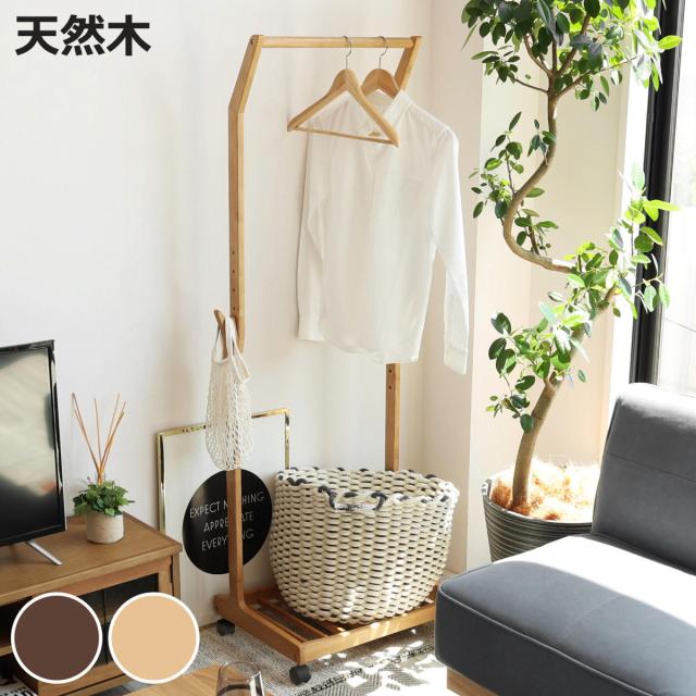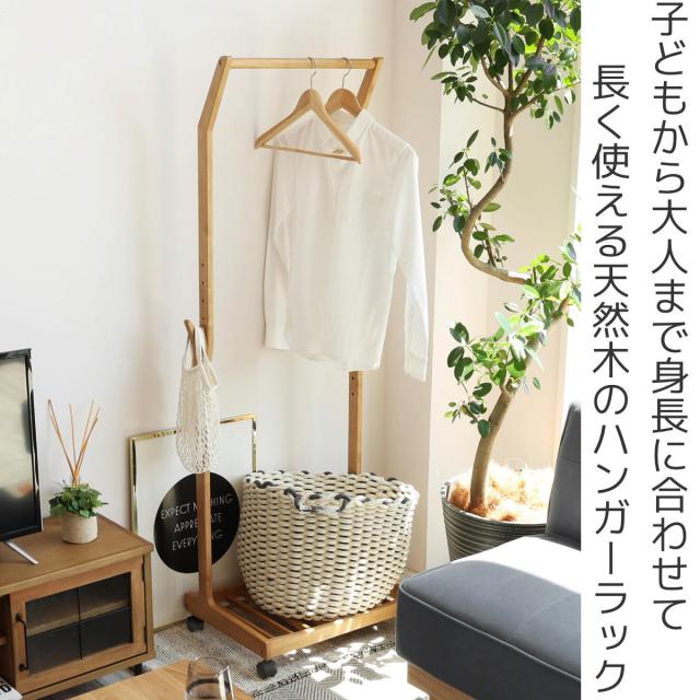 ハンガーラック 幅58.5cm 高さ調節可能 キャスター付 子ども 天然木 ( ハンガー ラック 木製 高さ調節 コート掛け 棚付 ランドセルラック キャスター フック付 衣類 収納 家具 ブラウン ナチュラル )