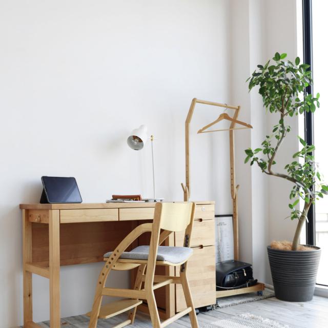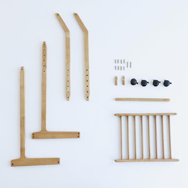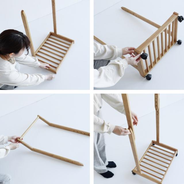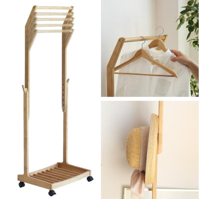 5段階の高さ調節ができる天然木のハンガーラックです。幼児期の子どもから大人まで身長に合わせて長く使うことができるロングライフデザインのアイテムです。