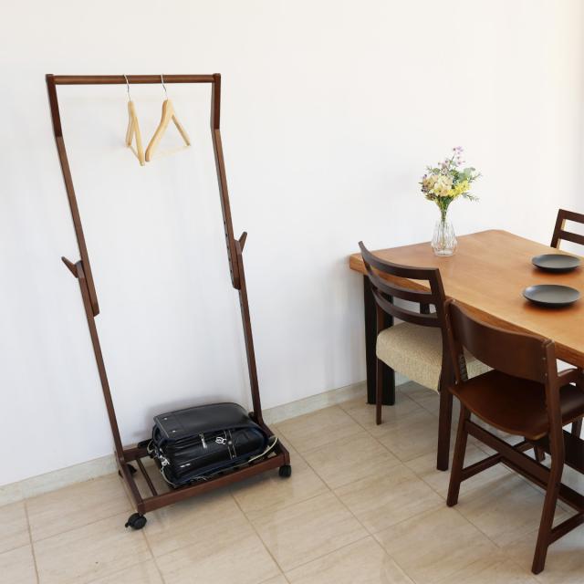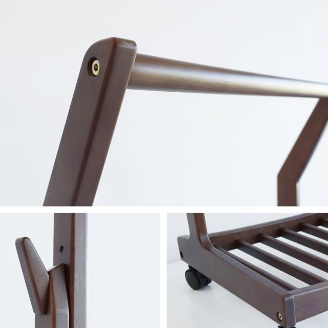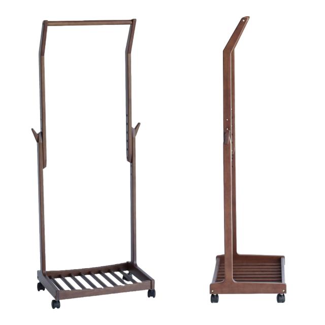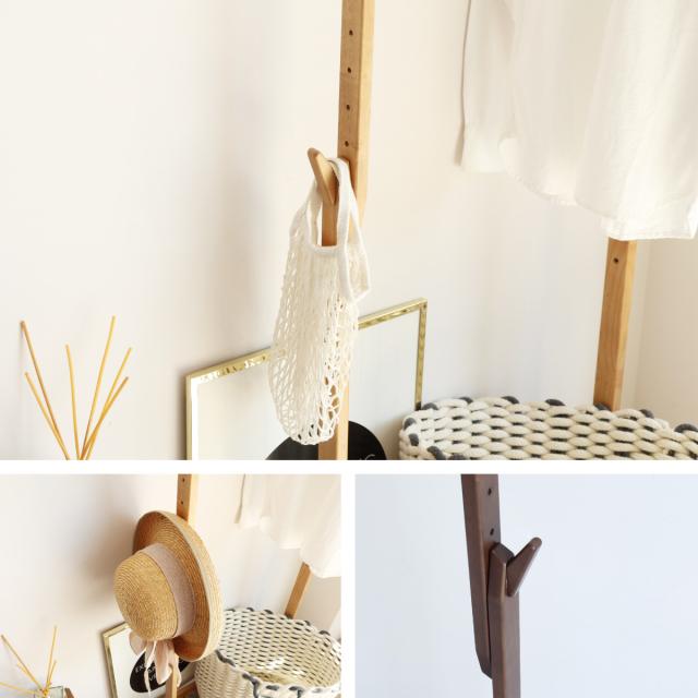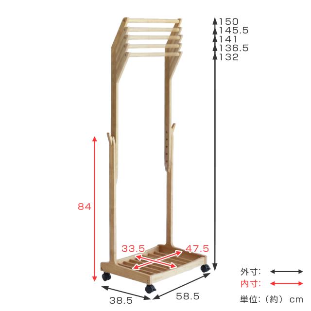高さ5段階調節できる天然木ハンガーラック 幅58.5cm