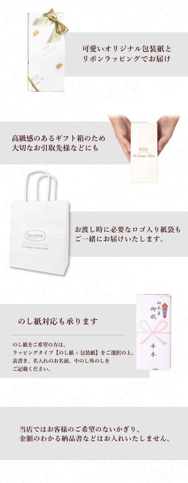 おいしい淹れ方と、各ティーの説明をまとめた用紙も同梱しておりますので、受け取られた方も安心してお楽しみいただけます。