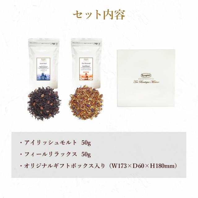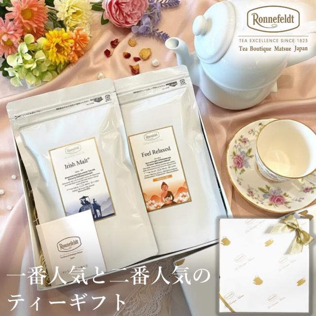 当店にて紅茶の中で人気No.1の「アイリッシュモルト」と、ハーブティーの中で人気No.1の「フィールリラックス」の人気セットです。