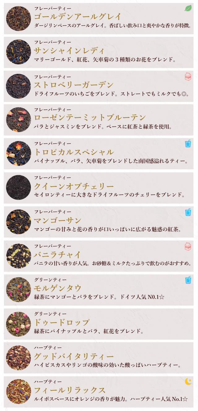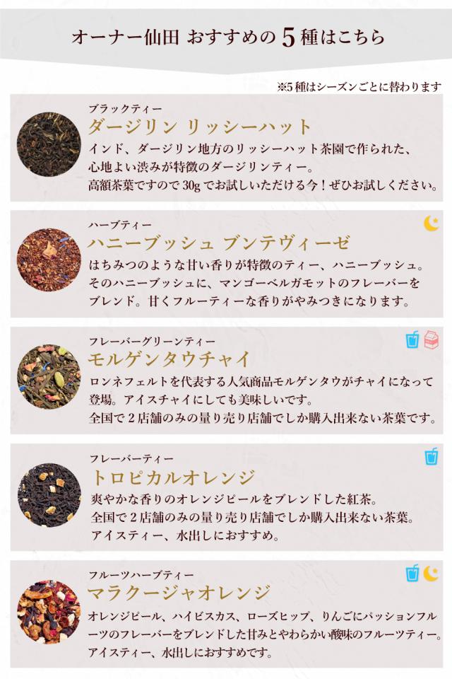 30種の茶葉の中からお好きな3種(重複選択不可)をお選びいただけます。
