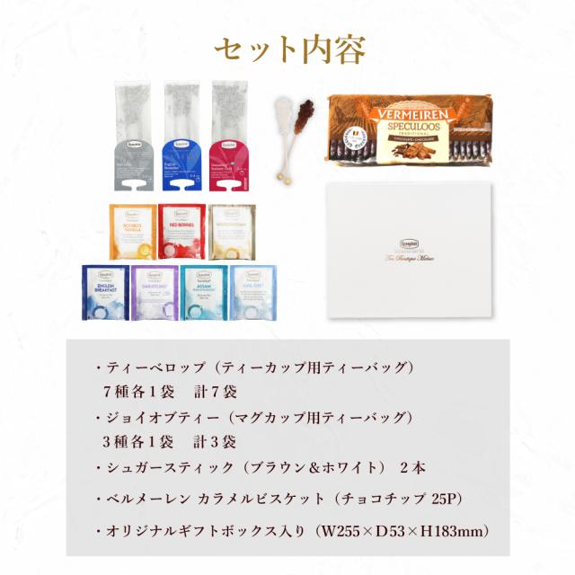 ベルギーの老舗ビスケット専門メーカー「ベルメーレン社」のチョコビスケットと、ロンネフェルトの紅茶が入ったセットです。