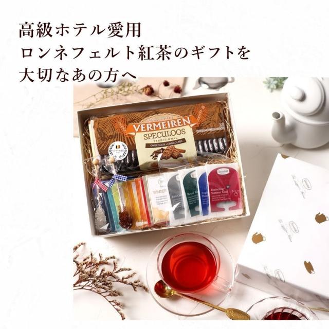 ベルギーの老舗ビスケット専門メーカー「ベルメーレン社」のチョコビスケットと、ロンネフェルトの紅茶が入ったセットです。