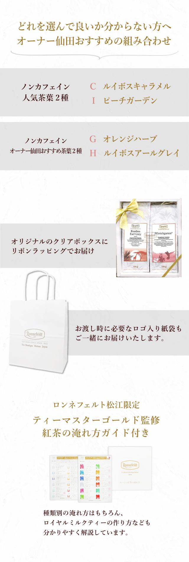 人気のノンカフェイン茶葉 9種類の中からお好きなものを2種類お選びいただけます。