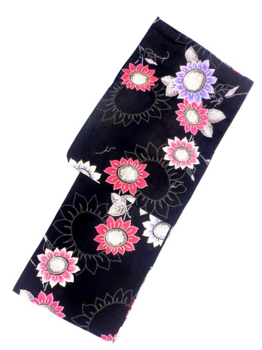 仕立て上がり浴衣 浴衣 プレタ 対応身長 155cm-168cm 変わり織り 黒地 ピンク 向日葵 柄 No.2560 セットにするとさらにお得!!