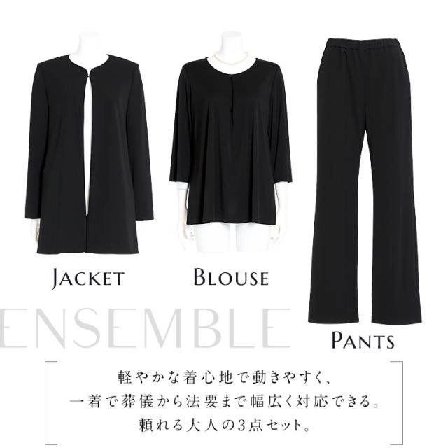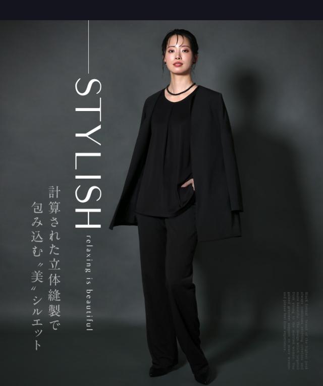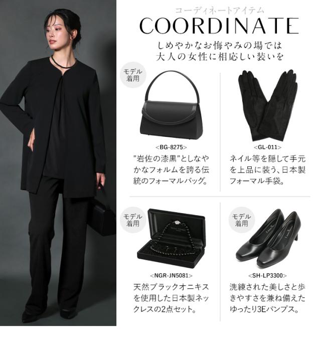 [喪服 ブラックフォーマル レディース パンツスーツ 日本製 礼服 ロング丈 洗える 大きいサイズ ゆったり 黒 スーツ フォーマル パンツ ストレッチ ブラック 結婚式 七五三 法事 入園式 入学式 卒園式 卒業式 服装 母親 30代 40代 50代 60代 M L LL DI-61002 送料無料]