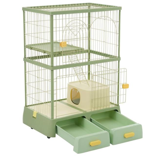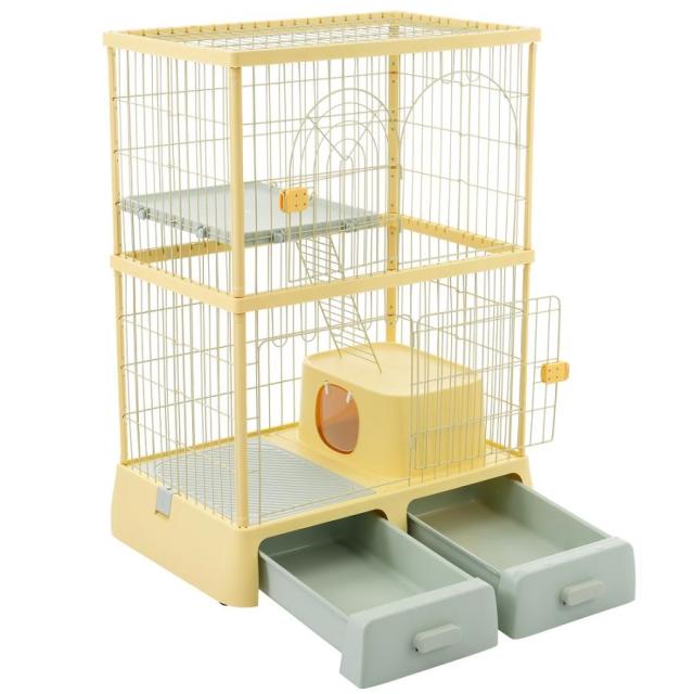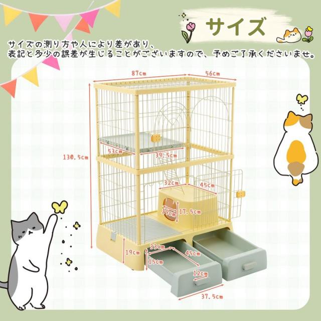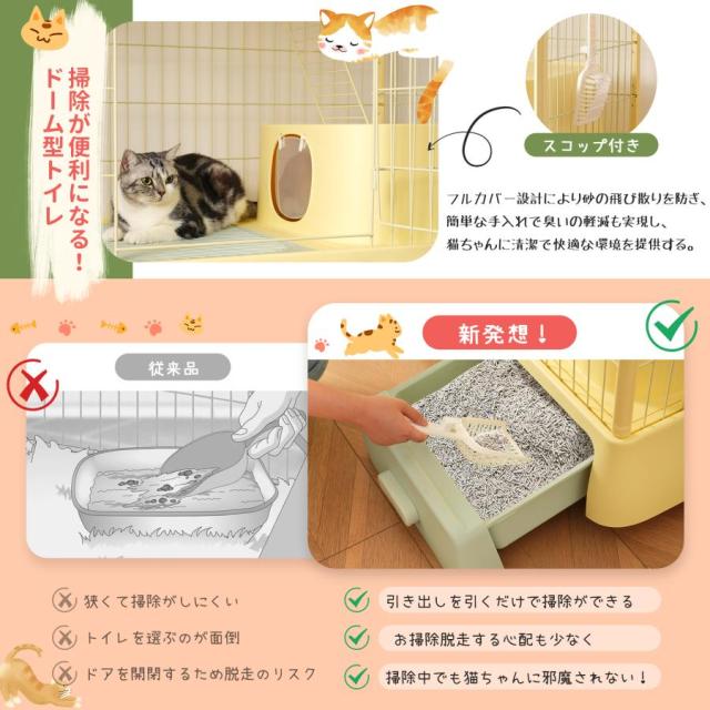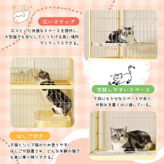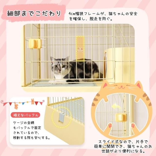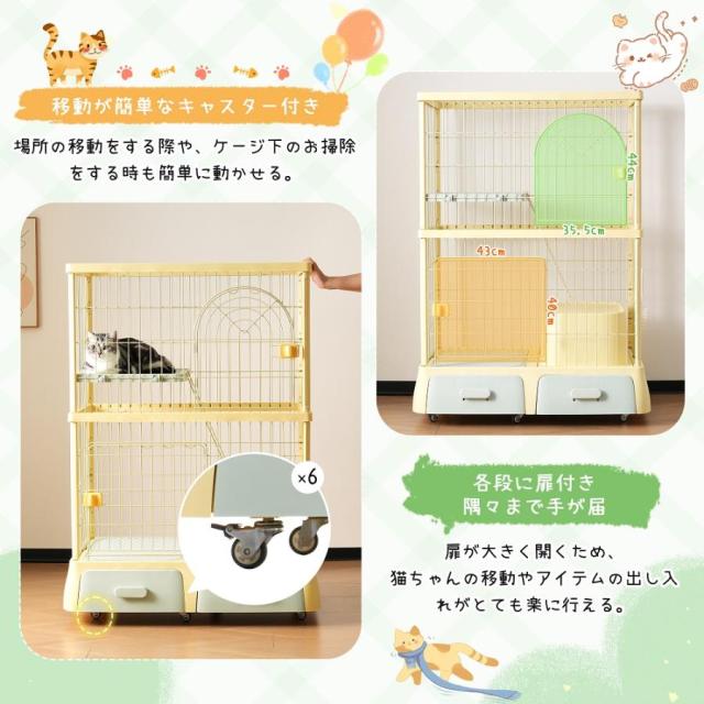 ペットケージ 大型 猫ケージ 2段式 猫ドア付き キャスター付き キャットケージ 中型 おしゃれ キャットハウス ネコハウス 掃除しやすいトレーケージ 多頭飼い 引き出しトレー 留守番 保護 脱走防止 多頭飼い