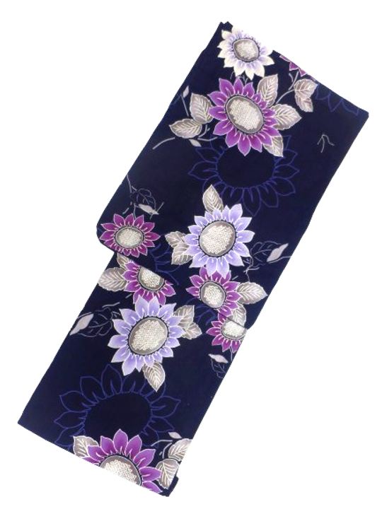 仕立て上がり浴衣 浴衣 プレタ 対応身長 155cm-168cm 変わり織り 濃紺地 紫 向日葵 柄 No.2567 セットにするとさらにお得!!