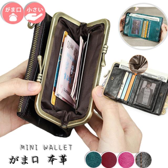 ポイント超超祭 がま口財布 本革 小銭入れ 財布 レディース 無地 がま口 二つ折り がまぐち小銭入れ コンパクト ウォレット 小さい財布 薄い カード入れ 贈り物