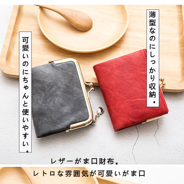 ポイント超超祭 がま口財布 二つ折り レディース がまぐち 無地 ウォレット 軽い レザー調 大容量 ミニ財布 質感 カード入れ お札入れ 小銭入れ サイフ 誕生日