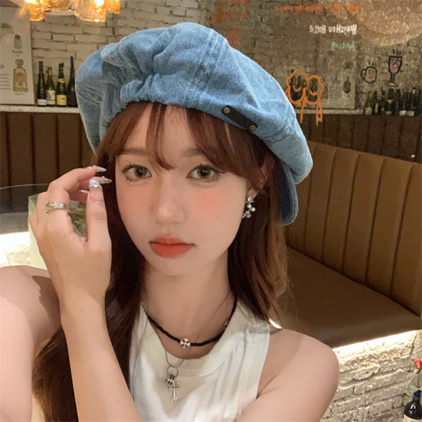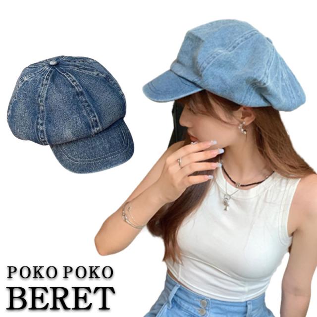 ポイント超超祭 帽子 ベレー ベレー帽子 レディース ニット メンズ 女性 30代 デニム柄 40代 おしゃれ かわい ベレー帽 秋冬 コットン ギフト 防寒