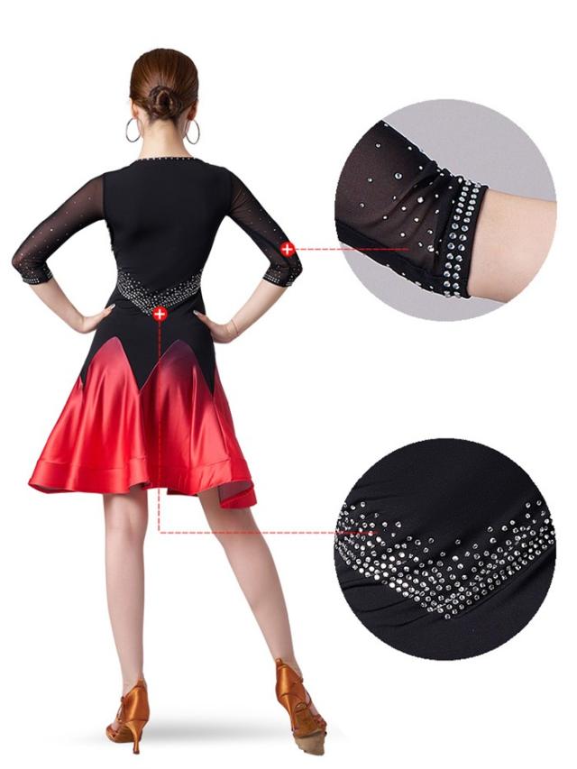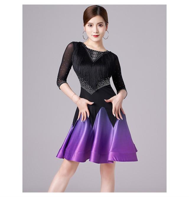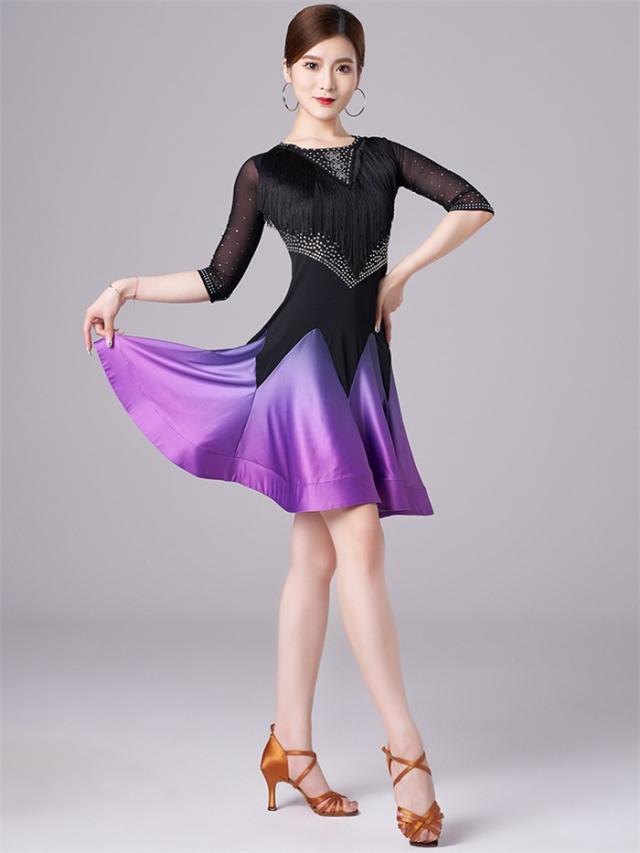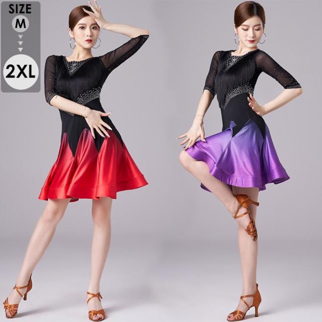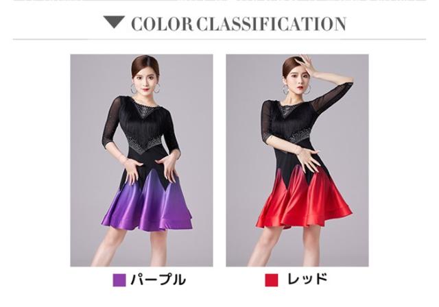 社交ダンス ラテンドレス ワンピース ラテン衣装 チャチャチャ ダンス衣装 練習服 スタンダード ラテンダンス ラテン競技着 練習着 ダンス 演出 ダンスウエア ダンス発表会 団体 サルサダンス 競技用ドレス ステージ 演出服 パープル レッド