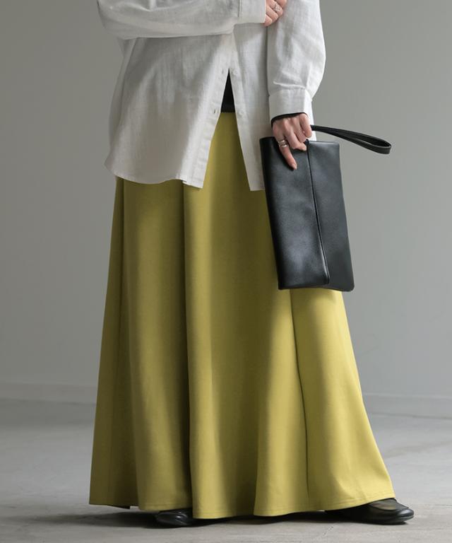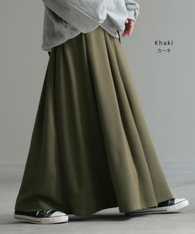 とろみ感のある柔らかなポンチ素材が心地良いロングスカートです。