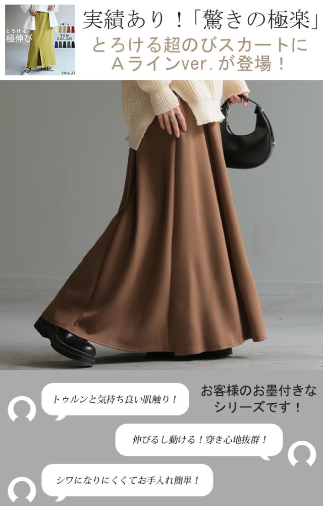 スカート 超伸び Aライン レディース ロングスカート ボトムス ポンチ きれいめ フレア フレアスカート ゴム ロング ストレッチ マキシ マキシスカート ポンチスカート 無地 ボトム ゆったり おしゃれ ストレッチ ジャージー 黒 カーキ 春 夏 HUG.U 秋新作