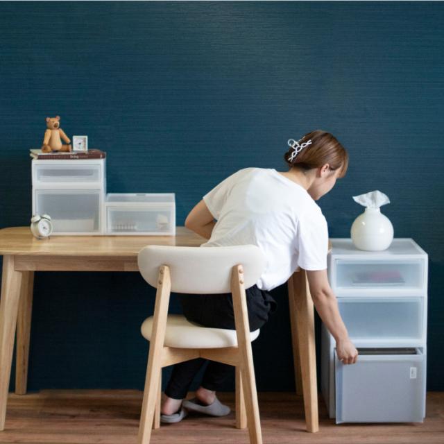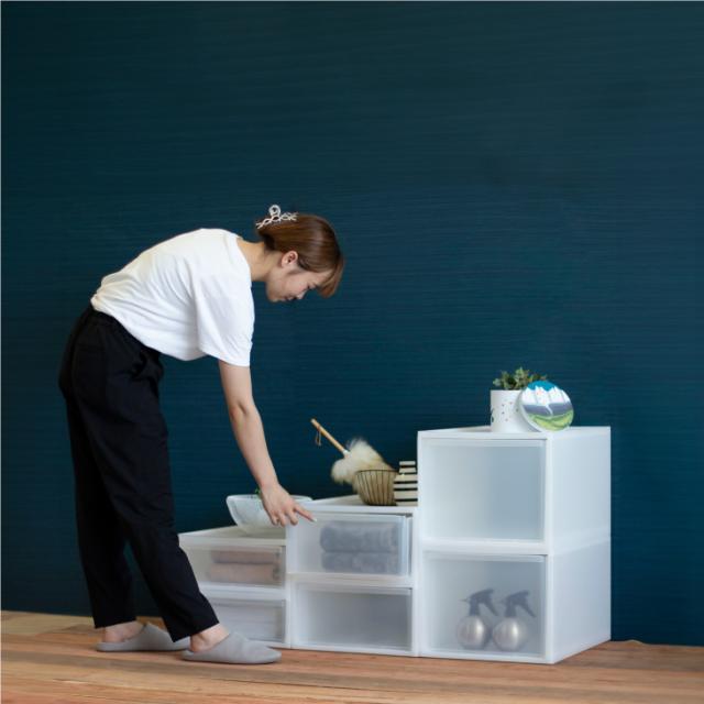 一段ずつ積み重ねができるスタッキングタイプで好きな段数に組み替えてご使用いただけます。