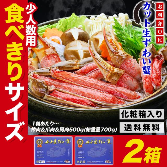 ギフト カニ 蟹 【お刺身OK】 カット生ずわい蟹 (化粧箱入) 約2人前×2箱 少人数用 食べきりサイズ お試し かに ずわいがに ズワイガニ ポーション 鍋 しゃぶしゃぶ 焼き hp 年末お届け可能 冬ギフト 年末年始 お歳暮 御歳暮