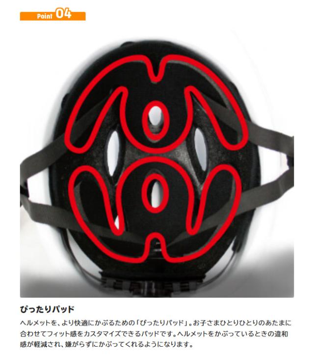 360 度!リフレクターが付いているので、暗い道でも車のライトなどに反射し安全です。ダイヤルアジャスターの採用により、お子様の頭囲に合わせて簡単にサイズ調節が可能です。あごひもにバックルを採用することにより、ワンタッチで簡単に着脱が可能です。更に、3Dパッドの採用により、お子様の成長や頭に合わせてヘルメット内側のサイズ調節が出来ます。
