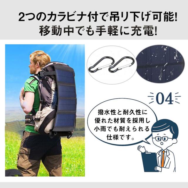 ソーラーパネル 20W 充電器 太陽光発電 折り畳み式 急速充電 高転換率 超薄 軽量 IP65防水 省エネ 節電対策 キャンプ