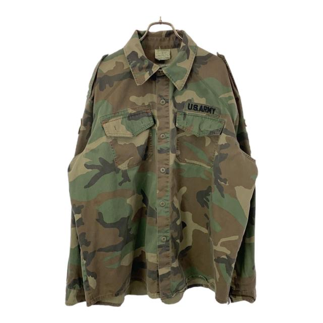 ユーエスアーミー 迷彩柄 ワッペン 長袖 ミリタリージャケット XL カーキ系 US.ARMY カモフラージュ メンズ